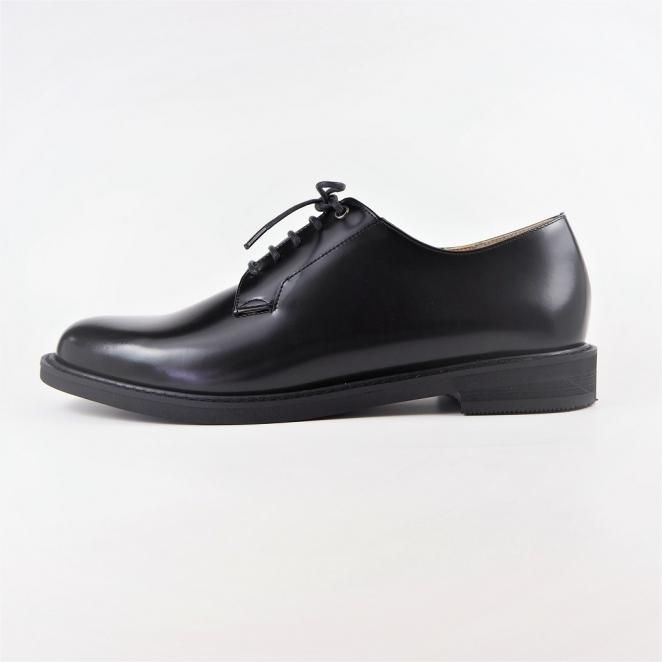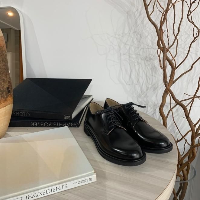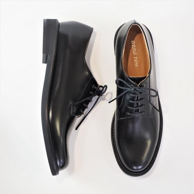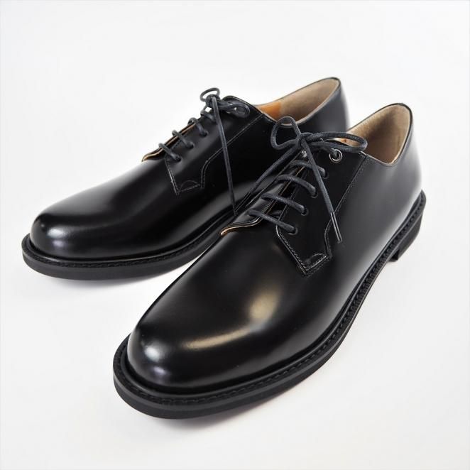 ブラック ソフトガラスレザー プレーントウ