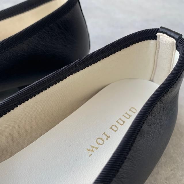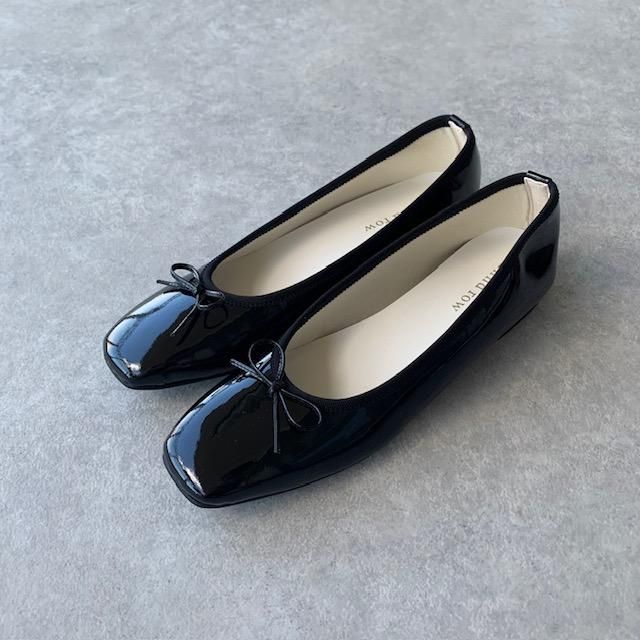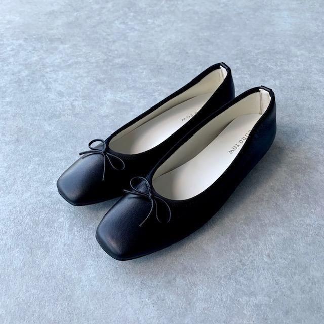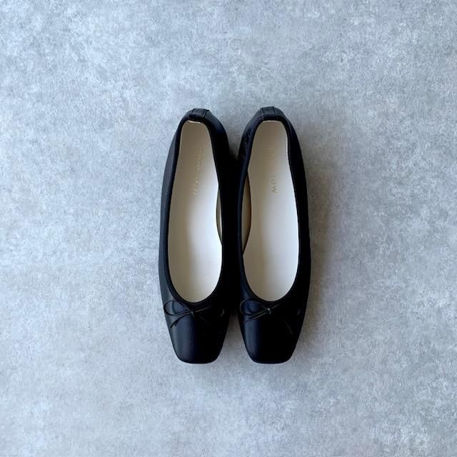 ブラック スムース セミスクエアトウと小さめのリボンが大人な印象