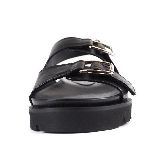 かかともベルトで調整できます。バックルは踝に当たらない設計です
