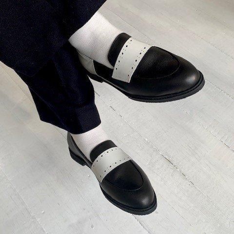 ブラック&エトープ スムース クリームのサドルをワンポイントにしたカラーブロック