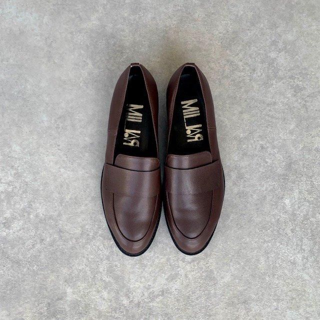 ダークブラウン スムース カジュアルになりすぎない素材感は、様々なシーンで活躍します
