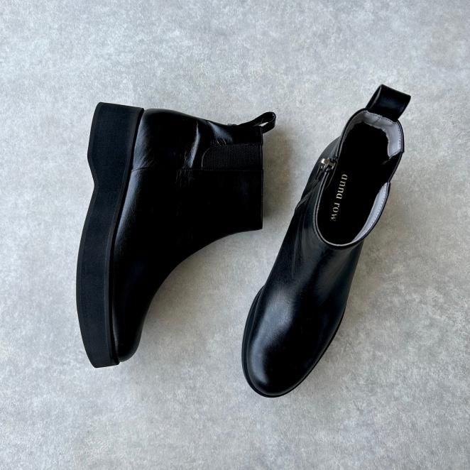 ブラック スムース ウォータープルーフ仕様☂ 外側がサイドゴア、内側がファスナーです