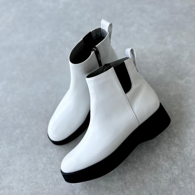 ホワイト スムース ウォータープルーフ仕様☂ 外側がサイドゴア、内側がファスナーです